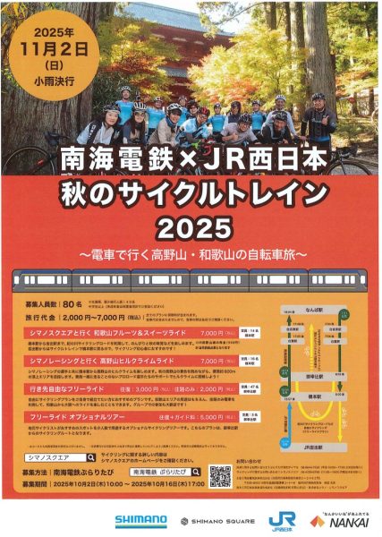 南海電鉄×JR西日本 秋のサイクルトレイン2025 ※募集終了