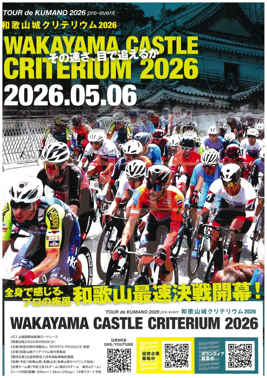 26回目となる今大会では、昨年に引き続き和歌山城クリテリウムから開幕。